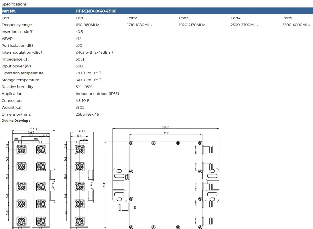 Penta-band combiner(698-4000MHz)4.3-10-Female